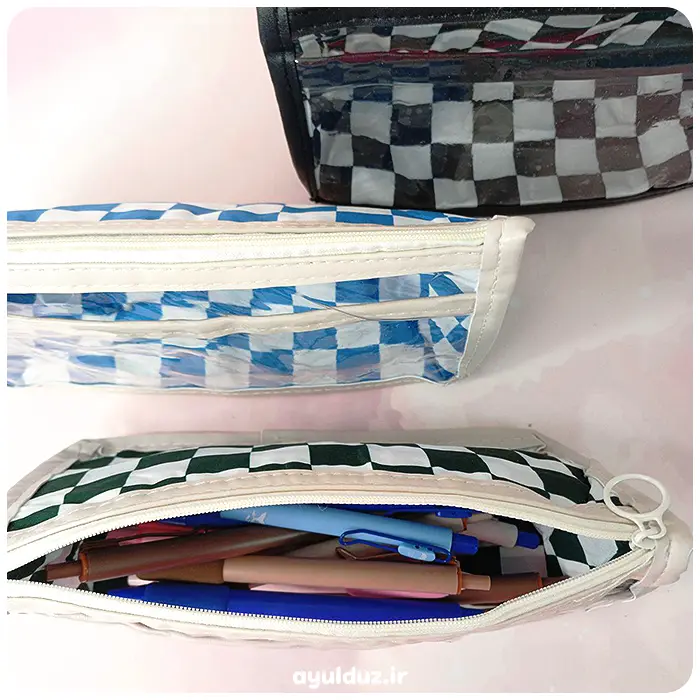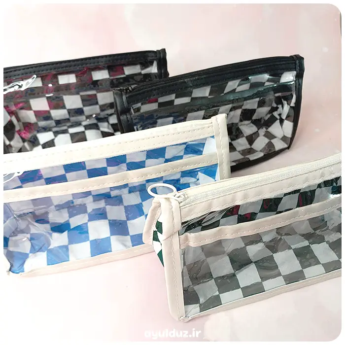 خرید اینترنتی جامدادی دو قسمتی جلو شفاف شطرنجی