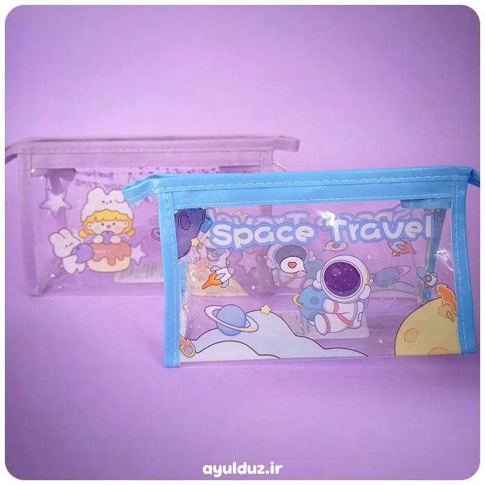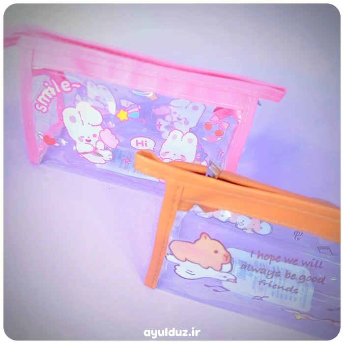 این وسیله کاربردی خوشگل جادار قابل استفاده بعنوان جامدادی، کیف لوازم آرایشی بهداشتی و… در پنج طرح و رنگبندی آبی فضانورد، صورتی خرگوش، بنفش دختر، نارنجی کاپی بارا و سبز پاندا عرضه شده. همونطور که در ویدیو میبینین جامدادی از کف و بغل حجم میگیره.