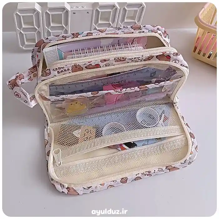 خرید اینترنتی جامدادی پنج قسمتی جلو شفاف خرس و کاپی بارا